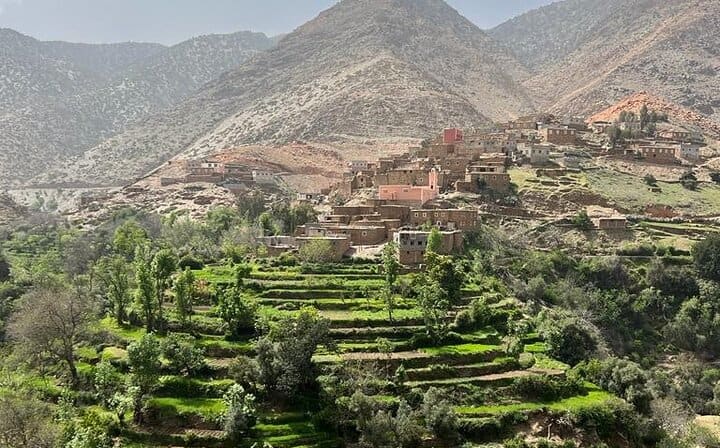 Next, set off on an easy 2-hour hike along scenic Atlas trails leading to a welcoming Berber village. Enjoy a home-cooked lunch prepared by a local family—an unforgettable taste of genuine Berber hospitality. After lunch, continue with another hour of walking through beautiful mountain scenery before beginning the return journey to Marrakech, ending the day with lasting memories of nature, culture, and breathtaking views.