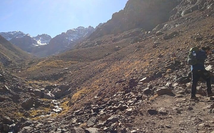 Upon arrival in Imlil, you’ll meet your certified local mountain guide and mule team before starting your trek. The trail gradually ascends through juniper forests, rocky paths, and dramatic valleys, offering spectacular views at every turn. You’ll pass the sacred shrine of Sidi Chamharouch, a local pilgrimage site, before continuing toward the mountain refuge.