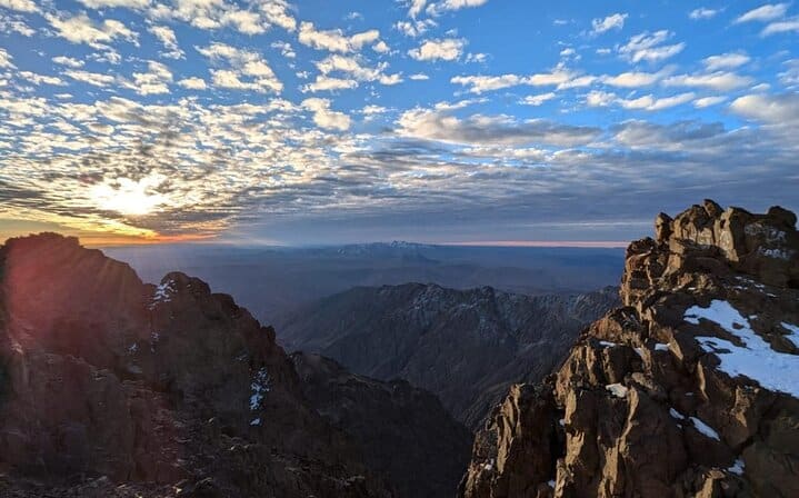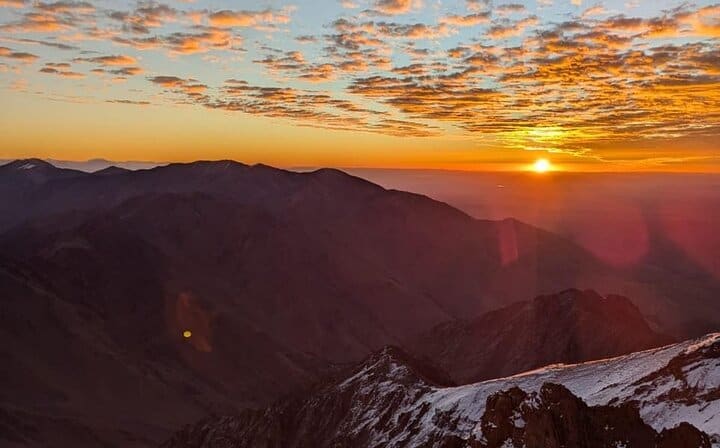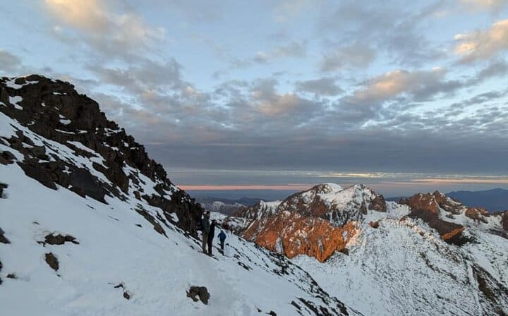 Before sunrise on day two, the summit push begins. Equipped with headlamps, you ascend steadily across rocky slopes and high-altitude terrain. The final climb is challenging but incredibly rewarding. Standing on the summit of Mount Toubkal as the sun rises is a moment you will never forget. From the top, enjoy breathtaking 360° panoramic views stretching across the Atlas Mountains and, on clear days, all the way toward the Sahara Desert.