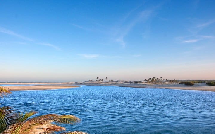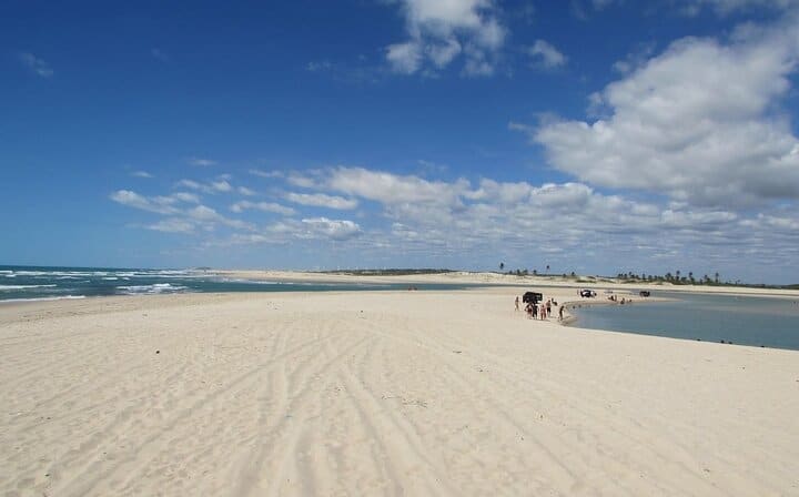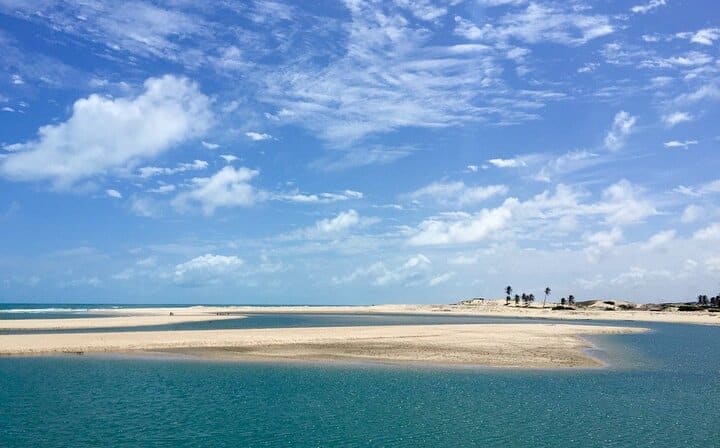 Do you know what happens when the river and the sea meet in Ceará? Natural pools are formed and an indescribable scenery at Águas Belas Beach! The beautiful beach of the municipality of Cascavel, very close to Fortaleza (60km), is famous for the encounter of the Malcoiled River with the Atlantic Ocean. For those who like tranquility and a beautiful walk with family and friends, this is the right place. There are also a lot of dunes, red cliffs and lost villages here.